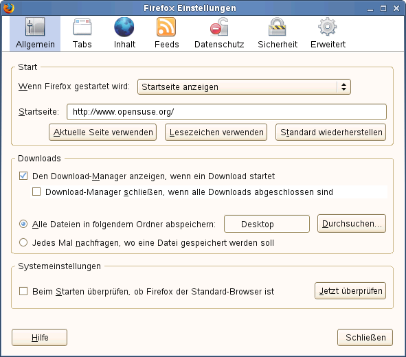 Wenn Sie den Standardordner für heruntergeladene Dateien anpassen oder den Popup-Blocker verändern möchten, klicken Sie auf .