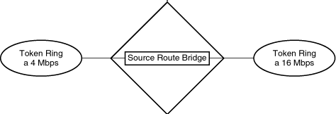 Source route bridges can be used to connect PC users on both 4-Mbps and 16-Mbps token ring networks, as shown in Figure 4-5. PC users on the same network segment must operate at the same speed. Linking LANs operating at different speeds together with source route bridges is especially important when organizations are installing newer 16-Mbps token ring networks but still have a large number of 4-Mbps LANs.