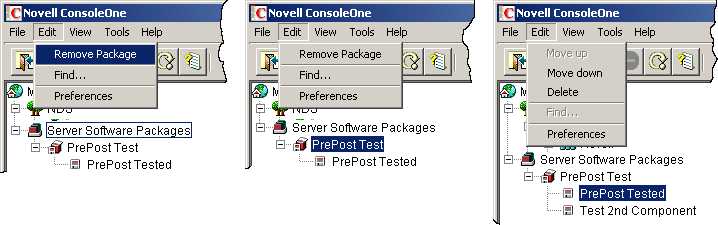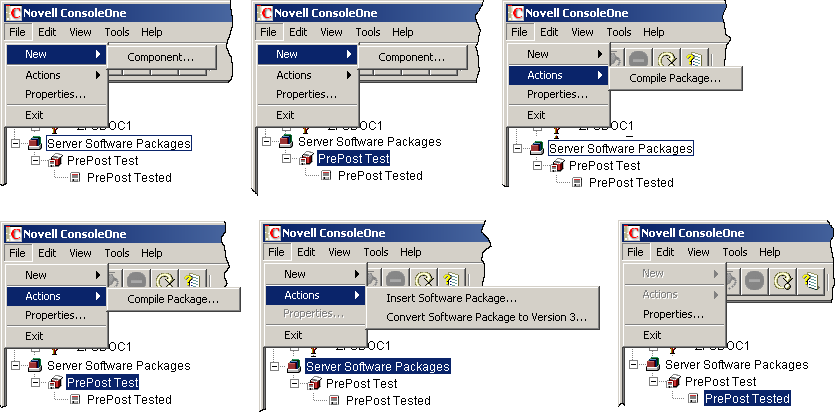 使いやすさを向上させるため、Novell ConsoleOne(R)の各種メニューオプションの位置が再構成されました。ただし、ZENworks 6.5 eDirectoryオブジェクトを右クリックしたときに表示されるオプションは、ZENworks for Servers 3.xのオプションと同じです。