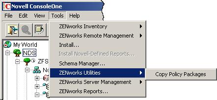 [Tools]>[ZENworks Utilities]の順にクリックすると、次のオプションが表示されます。