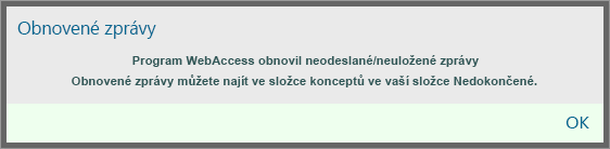 Pokud spustíte program WebAccess a počet obnovených automaticky uložených zpráv se pohybuje mezi dvěma a pěti, zobrazí se následující zpráva: