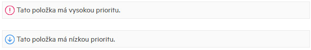 Výchozí nastavení při vytváření a odesílání jakéhokoli typu položky ve službě GroupWise Web je Standardní. Položky odeslané se standardní prioritou se od sebe graficky neliší. Když však změníte prioritu na Vysokou nebo Nízkou, ikona e-mailových položek se změní tak, aby označovala příslušnou prioritu. Také při prohlížení položek s jednou z těchto priorit z otevřené položky nebo v podokně náhledu se v horní části oblasti zpráv zobrazí příslušný panel (viz níže).