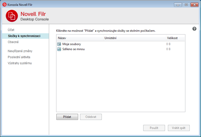 Konfigurace Síťových složek v systému Filr pro synchronizaci s vaším počítačem: