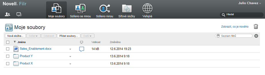 Tento příklad je ukázkou aplikace Filr na zařízení se systémem iOS. V systémech Android a Windows se její vzhled a chování liší.
