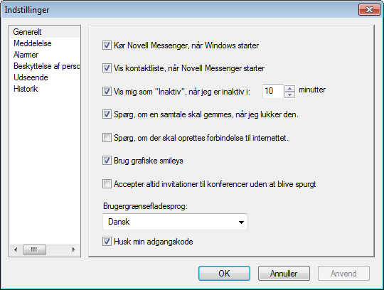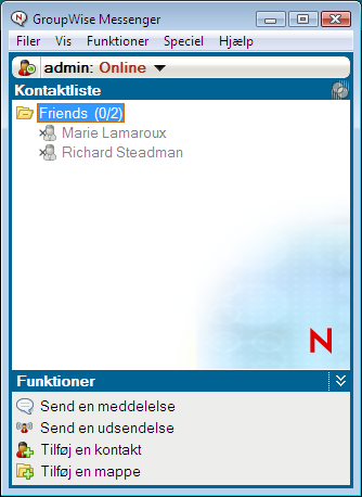 VIGTIGT!Novell Messenger skal være installeret på din arbejdsstation, for at Messenger-funktionerne kan være tilgængelige i GroupWise.
