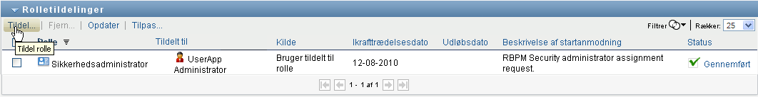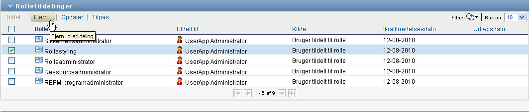 Marker en tidligere defineret rolletildeling, og klik på :