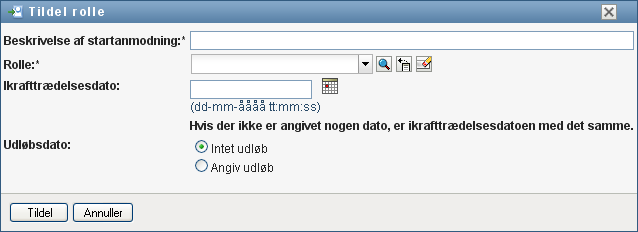 Angiv udløbsdatoen for rolletildelingen i feltet .
