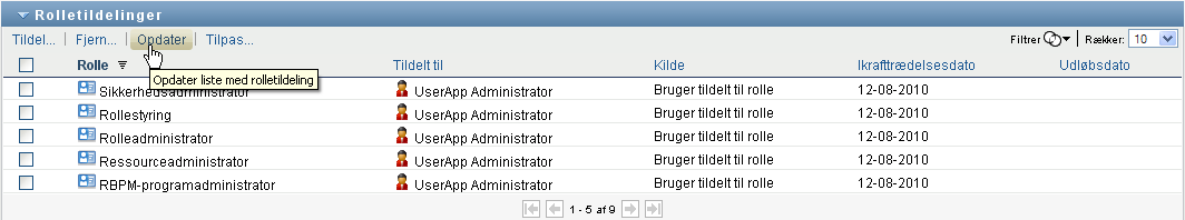 Sådan opdateres listen over rolletildelinger: