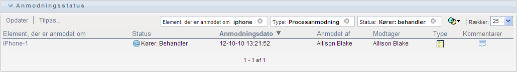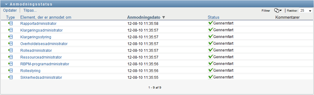 BEMÆRK!Hvis du vil se kommentarerne til en anmodning, skal du medtage kolonnen Kommentarer på listen over valgte kolonner. Oplysninger om at føje kolonner til opgavelisten findes i Afsnit 10.4.4, Tilpasning af kolonnerne med anmodningsstatus.
