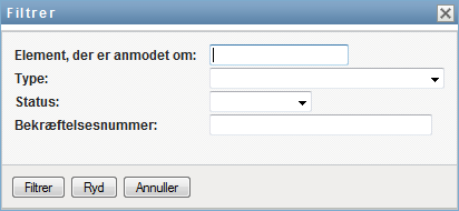 Hvis du vil begrænse søgningen til anmodninger med et bestemt bekræftelsesnummer, skal du indtaste id'et i feltet .