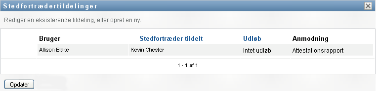 Klik på ud for en eksisterende stedfortrædertildeling for at redigere den: