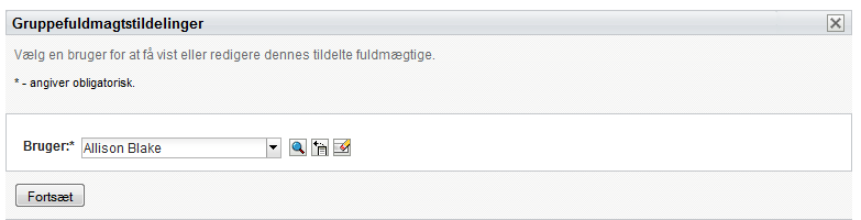 Klik på for at oprette en ny eller redigere en eksisterende fuldmagtstildeling.