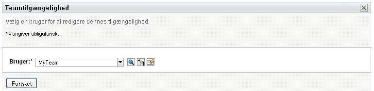 Med handlingen kan du angive de procesanmodninger, som teammedlemmerne ikke er tilgængelige til at arbejde på. I den tidsperiode, hvor du eller dine teammedlemmer ikke er tilgængelige, videresendes denne type procesanmodninger til stedfortræderens kø.