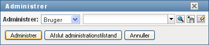 Når en domæneadministrator eller domæneleder logger på brugerprogrammet, indeholder Arbejdskontrolpanel kontrollen , som er en global opslagskontrol. Med kontrollen kan den aktuelle bruger vælge en bestemt bruger, gruppe, beholder, rolle eller teammedlem og bruge arbejdskontrolpanelets grænseflade til at administrere arbejde for den valgte enhedstype. Når brugeren har valgt en enhed, vedrører dataene og adgangstilladelserne i arbejdskontrolpanelet den valgte enhed og ikke den bruger, der er logget på i øjeblikket. Men når brugeren er i administrationstilstand, gælder menuerne og stadig for den bruger, der er logget på, og ikke den valgte enhed i kontrollen .