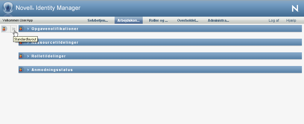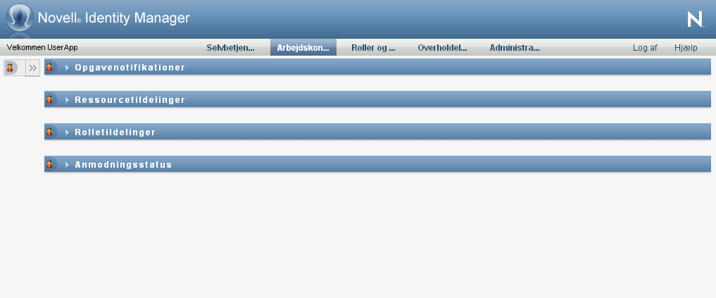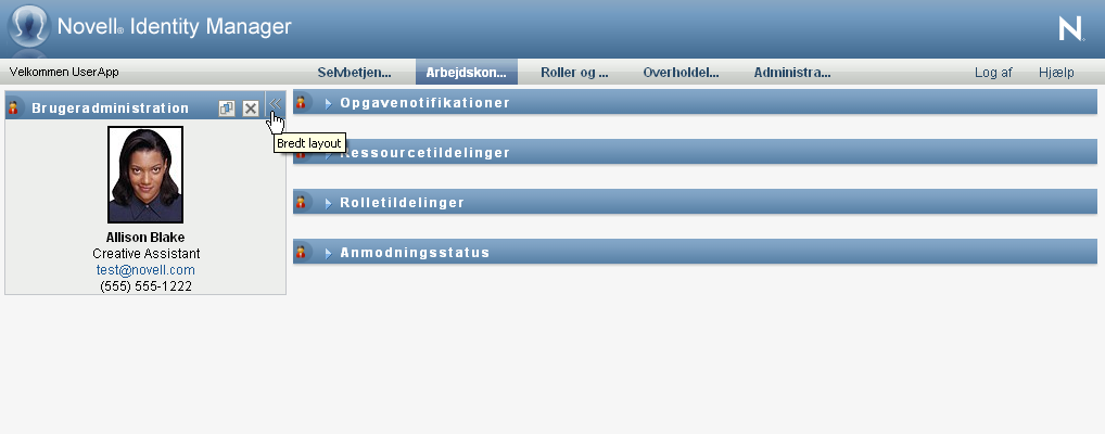 Afsnittet Brugerprofil skjuler oplysningerne om den valgte enhed for at give dig mere plads til at arbejde med afsnittene Opgavenotifikationer, Ressourcetildelinger, Rolletildelinger og Anmodningsstatus på siden.