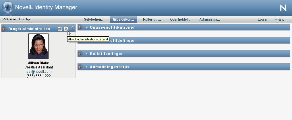 Sådan afsluttes administrationstilstand, og sådan nulstilles arbejdskontrolpanelet til at vise data- og adgangstilladelser for den bruger, der er logget på i øjeblikket: