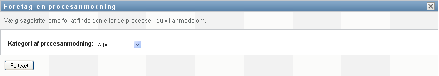 Siden Foretag en procesanmodning viser en liste over procesanmodninger, der er tilgængelige for den aktuelle bruger.