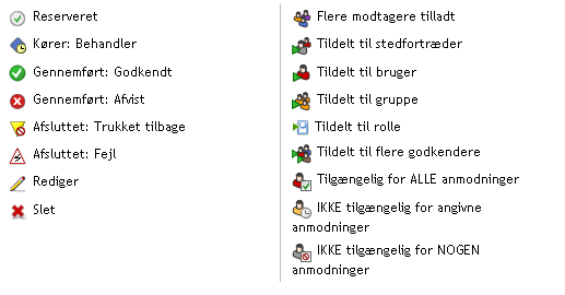 Kan bruges til at slette en fuldmagts- eller stedfortrædertildeling. Du sletter tildelingen ved at vælge den og klikke på ikonet .