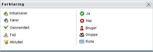 Forklaringen indeholder en kort beskrivelse af de ikoner, der bruges under fanen . Figuren herunder viser forklaringen.