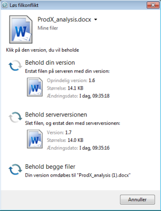 Hvis et dokument redigeres samtidigt fra flere lokationer, kan der opstå konflikter.