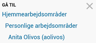 På Vibe-mobilgrænsefladen kan du se arbejdsområdetræet, så du kan se hierarkiet for din aktuelle lokation og hurtigt navigere til et andet arbejdsområde eller en anden mappe.