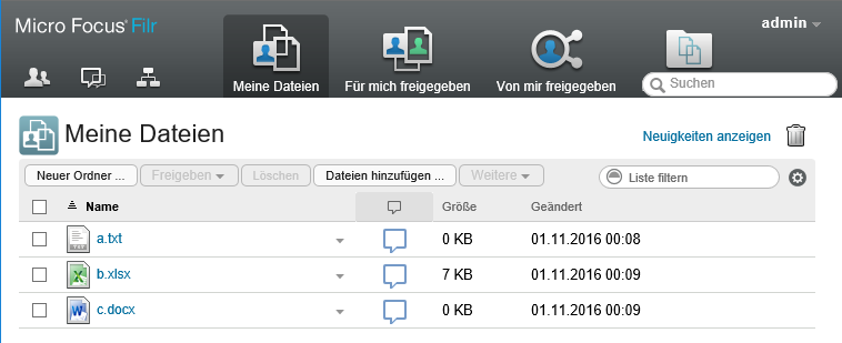 Dieses Handbuch beschreibt hauptsächlich den Zugriff auf Filr über einen Webbrowser.