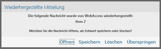 Wenn beim Starten von WebAccess zwei bis fünf automatisch gespeicherte Nachrichten wiederhergestellt werden, wird folgende Meldung angezeigt:
