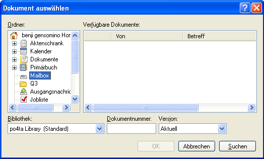 Um Benutzernamen in einer Liste auszuwählen, klicken Sie auf der Symbolleiste an, doppelklicken Sie auf den jeweiligen Benutzer und klicken Sie anschließend auf .