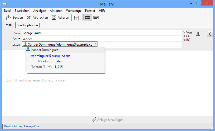 HINWEIS:In das GroupWise-Adressbuch können keine Adressen importiert werden.