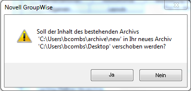 (Bedingt) Wenn Sie Ihr Archiv in ein Verzeichnis verschieben, in dem noch keine Archivdateien vorhanden sind, werden Sie durch eine Meldung gefragt, ob Sie den Inhalt Ihres Archivs an den neuen Standort verschieben möchten.