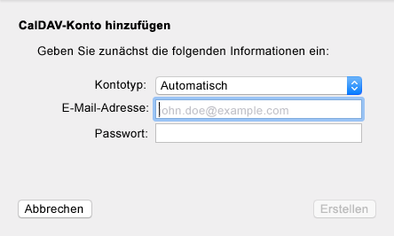 Wählen Sie "CalDAV-Konto hinzufügen" aus.