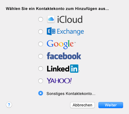 Wählen Sie "Sonstiges Kontaktekonto" aus.