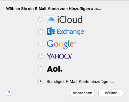 Wählen Sie Sonstiges E-Mail-Konto hinzufügen aus.