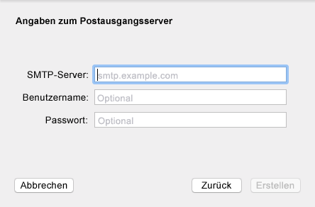 Geben Sie den SMTP-Server, Ihren Benutzernamen und das Passwort an.