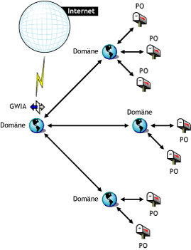 Mit dem Internet-Agenten können GroupWise-Benutzer und Benutzer anderer Messaging-Systeme im Internet per Email miteinander kommunizieren. Der Internet-Agent ruft eingehende Email-Nachrichten aus dem Internet ab, konvertiert diese aus dem RFC-822- oder MIME-Format in das GroupWise-Nachrichtenformat und leitet sie anschließend an den GroupWise Message Transfer Agent (MTA) weiter.