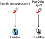 Der Nachrichtentransportagent (MTA = Message Transport Agent) und der Post-Office-Agent (POA) transportieren Nachrichten im GroupWise-System. Der MTA ist für das gesamte Nachrichtenaufkommen zwischen der Domäne und dem Post-Office zuständig, der POA hingegen ist für das gesamte Nachrichtenaufkommen innerhalb des Post-Office zuständig.