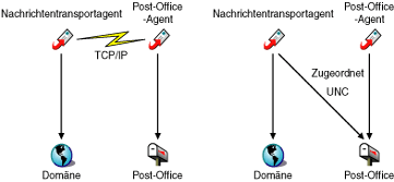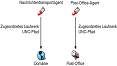 Für den MTA ist ein direkter Zugriff auf das Domänenverzeichnis erforderlich, damit er in die Domänendatenbank schreiben kann. Für den POA ist ein direkter Zugriff auf das Post-Office-Verzeichnis erforderlich, damit er in die Post-Office-Datenbank schreiben kann.