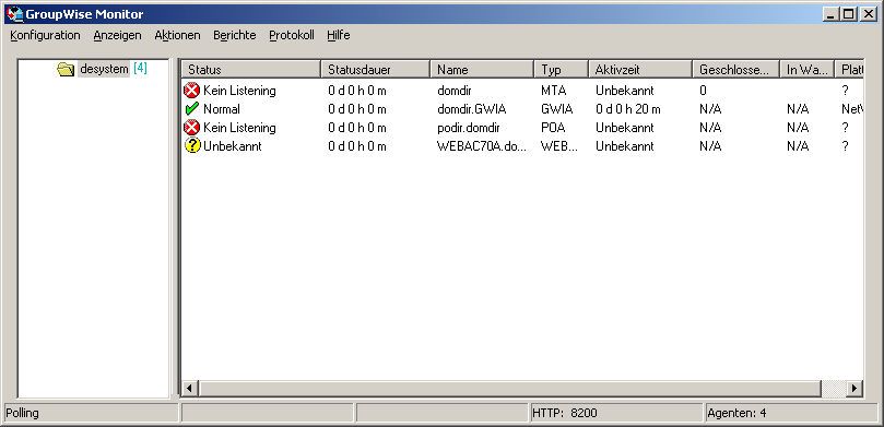 An der Serverkonsole des Monitor-Agenten können Sie viele Aktivitäten ausführen. Beispiel: