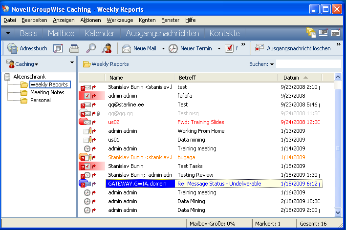 Abbildung 2-1 Mailbox, Nachrichten mit Kategorien