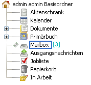 Die Ordner "Kalender", "Dokumente", "Mailbox", "Ausgangsnachrichten", "Jobliste", "Kontakte", "Aktenschrank", "In Arbeit" und "Papierkorb" können nicht umbenannt werden.