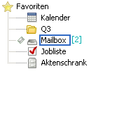 Favoriten: Sie werden immer dann angezeigt, wenn Sie sich nicht im Kalenderordner, Kontakteordner, Dokumentordner oder einem anderen NNTP-Ordner befinden. Mithilfe der·einfachen Ordnerliste "Favoriten" können Sie Ordner in andere Ordnerliste kopieren, um schneller auf sie zugreifen zu können.