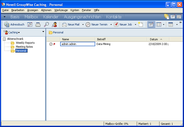 Im Remote- und Caching-Modus werden die in freigegebenen Ordnern vorgenommenen Änderungen jedesmal aktualisiert, wenn Sie eine Verbindung zum Master-GroupWise-System herstellen.