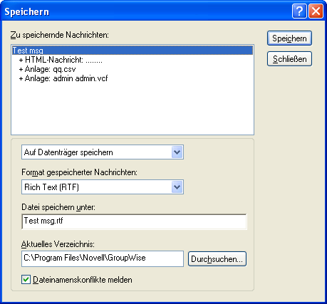 Markieren Sie die Nachricht, um sie auf einem Datenträger oder in einer GroupWise-Bibliothek zu speichern.