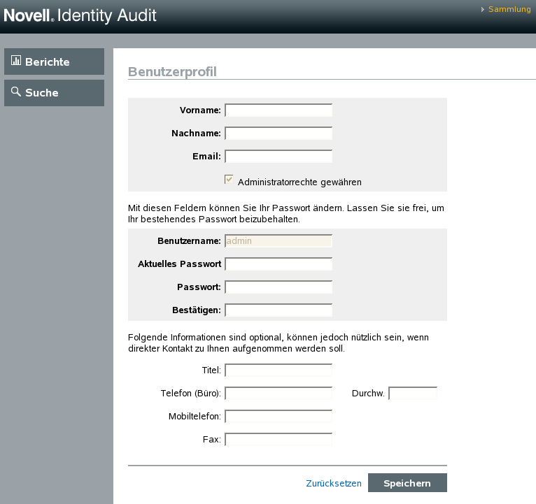 Weitere Informationen zum Zurücksetzen des Passworts eines anderen Benutzers finden Sie unter Abschnitt 9.2.3, Bearbeiten des Profils eines anderen Benutzers (nur Admin).