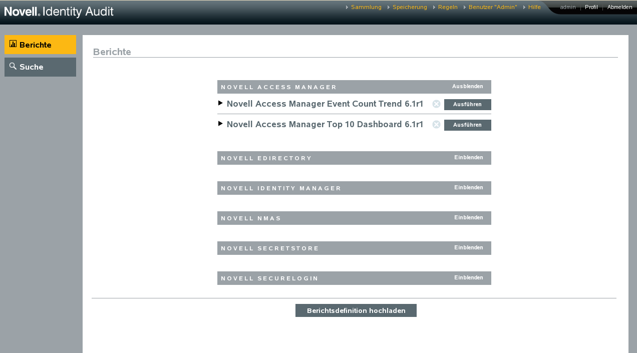 Abbildung 1-1 Oberfläche von Novell Identity Audit (Administratoransicht)