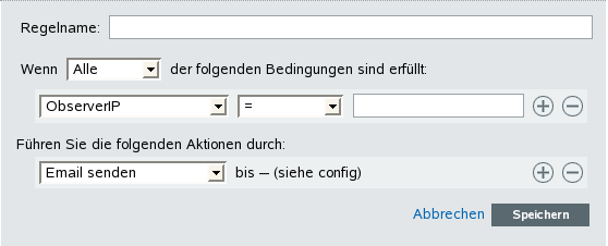 Regeln können auf allen suchbaren Ereignisfeldern basieren. Eine Auflistung dieser Felder finden Sie unter Tabelle 4-1. Die verfügbaren Operatoren sind abhängig vom Datentyp des Ereignisfelds. Beispiel: match subnet ist für IP-Adressen verfügbar, match regex ist für Textfelder verfügbar.