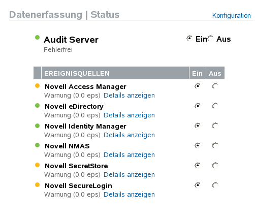 Unter können Administratoren die Datensammlung auf Anwendungsebene aktivieren. Diese Einstellungen können die Datensammlung für mehrere Server (z. B. mehrerer eDirectory-Instanzen) beeinflussen.