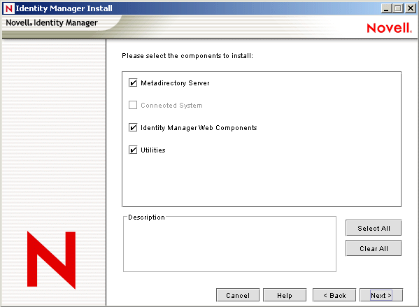 Novell eDirectory must be installed before you can install this option. Install the Metadirectory Server component where you want to run the Metadirectory engine for Identity Manager.