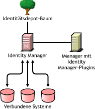 Identity Manager ist eine Datenzugriffslösung, die das so genannte Identitätsdepot verwendet, um Daten anwendungs-, datenbank- und verzeichnisübergreifend zu synchronisieren, zu transformieren und zu verteilen.