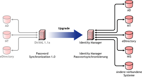 Abbildung 2-4 Upgrade von Passwortsynchronisierung 1.0 auf die Identity Manager-Passwortsynchronisierung